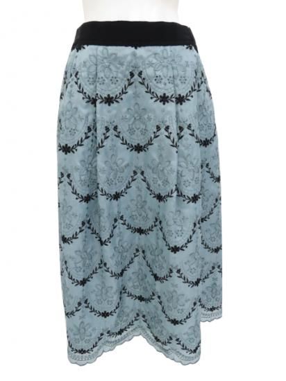 TO BE CHIC スカラップ ティアード 刺繍 スカート グリーン 40 '25年 A1【中古】
