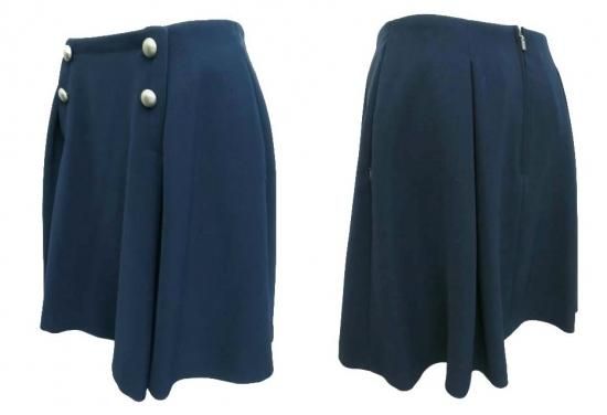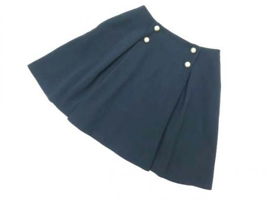 FOXEY NEW YORK スカート(Button B Pleat) ミッドナイトブルー 38 【中古】A1美品