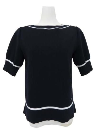 新品同様 FOXEY BOUTIQUE ニットトップ シュクレ 42129 ミッドナイトブルー×ホワイト 40 '21年