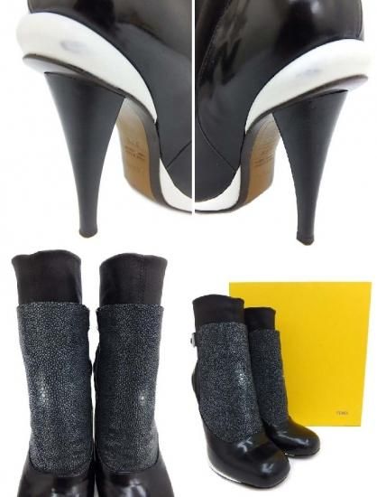 FENDI ブーツ レザー×RAZZA(エイ) ブラック×ホワイト #371/2 美品 【中古】