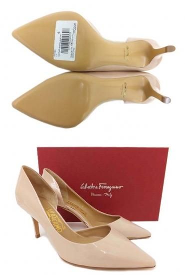 Ferragamo パンプス"PAM GLAS" パテントレザー ピンクベージュ系 #6未使用 【中古】