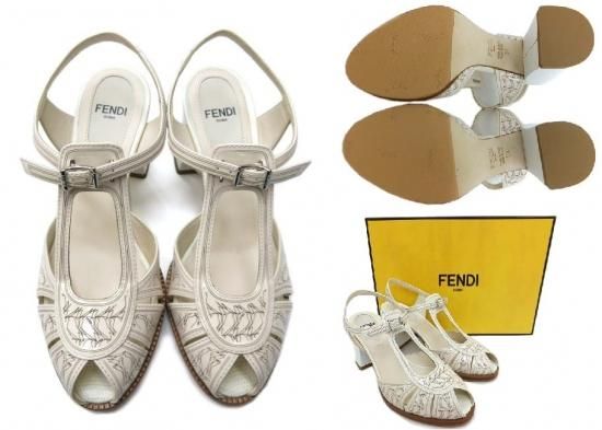 FENDI CHAMELEONサンダル パテントレザー ライトピンクベージュ系 #34 未使用 【中古】