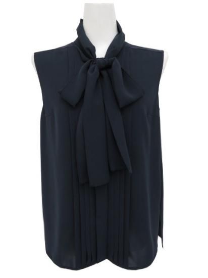 新品同様 FOXEY BOUTIQUE ブラウス プリーツエッセンス 38874 ネイビー 38 '23年増産 #EX掲載