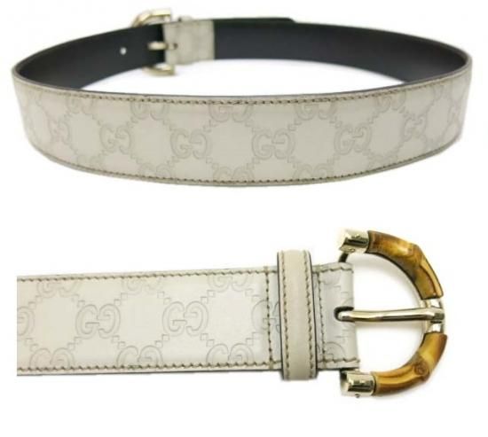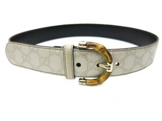 GUCCI グッチシマレザーベルト アイボリー系 【中古】
