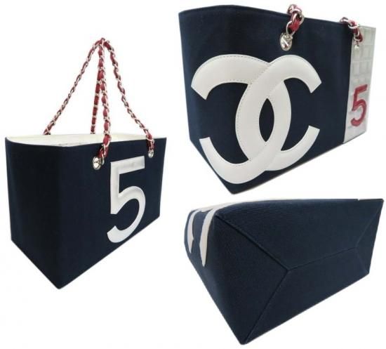 CHANEL トートバック コットンキャンパス×レザー ネイビー×レッド 美品【中古】