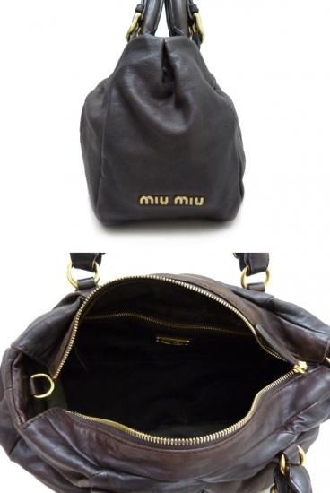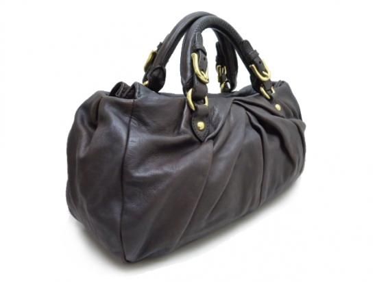 miumiu 2WAY ボストンバック アンティークレザー ダークブラウン 【中古】