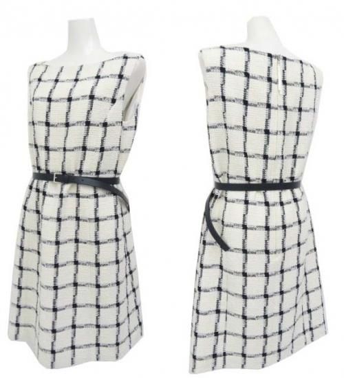 FOXEY BOUTIQUE ドレス エレガントチェック 41220 ベルト付き アイボリー 42 '20年 新品同様