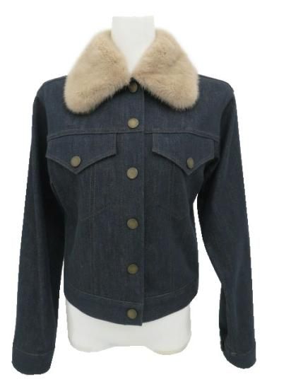 新品同様 FOXEY BOUTIQUE ジャケット ミンクGJ 【ファー】 40913 インディゴブルー 38 #ブローチ付き '19年