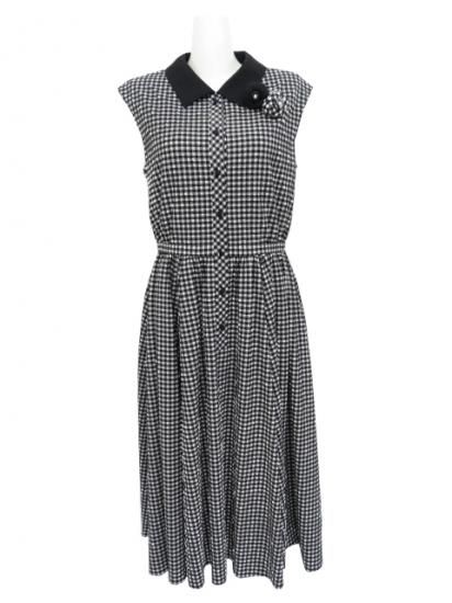 Rene チェッカードドレス コサージュ付き ブラック×ホワイト 36 '24年 新品同様【中古】
