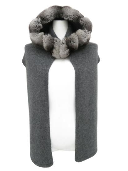 FOXEY BOUTIQUE チンチラ付きフーディストール 【ファー】 チャコールグレー系 A1【中古】