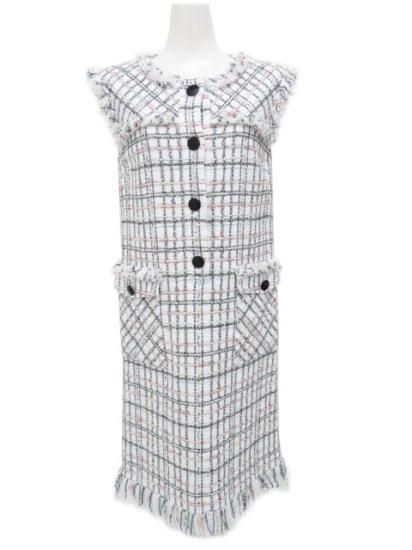 新品同様 Rene ツイードワンピース ホワイト×ブルー系×レッド系 34 '21年 #LINTON社製生地