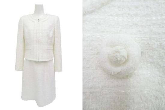 Rene ツイードジャケット&スカート スーツ ホワイト 36 '19年 新品同様
