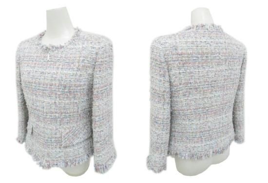 新品同様 Rene ツイードジャケット パステルスプリング ホワイト×ピンク系MIX 36 '21年