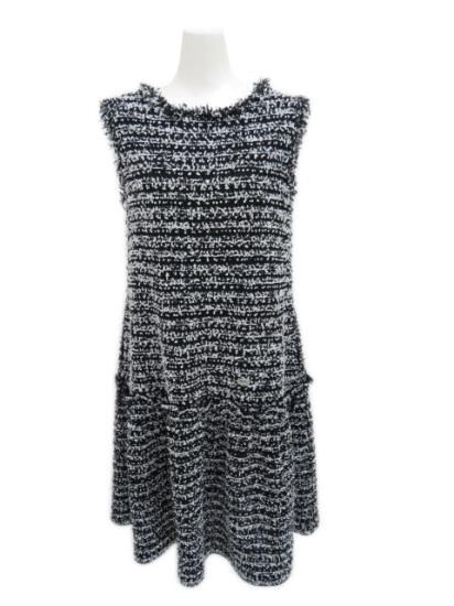 Rene リボン入りツイードニットワンピース ダークネイビー×ホワイト 36 '22年 中古A1美品