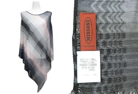 MISSONI ニットポンチョ ピンク×ブラック×グレー 中古A1