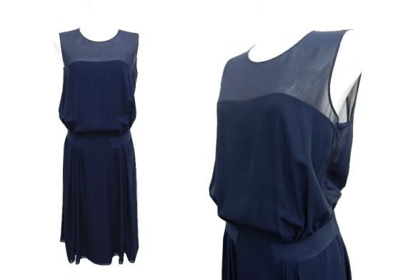 未使用 Salvatore Ferragamo シルクワンピース ネイビー 38