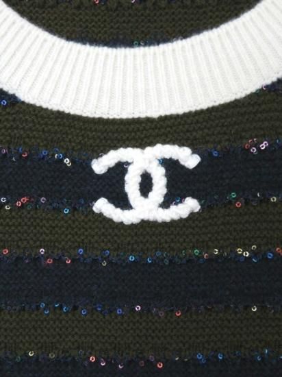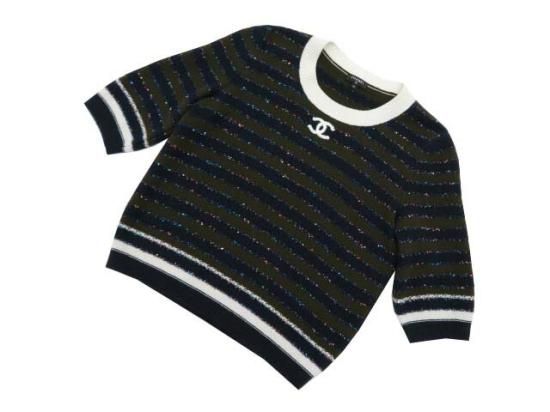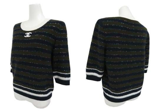 新品同様 CHANEL PULLOVER 2019年/20年 クルーズコレクション カーキ×ネイビー×ブルー×ホワイト 42
