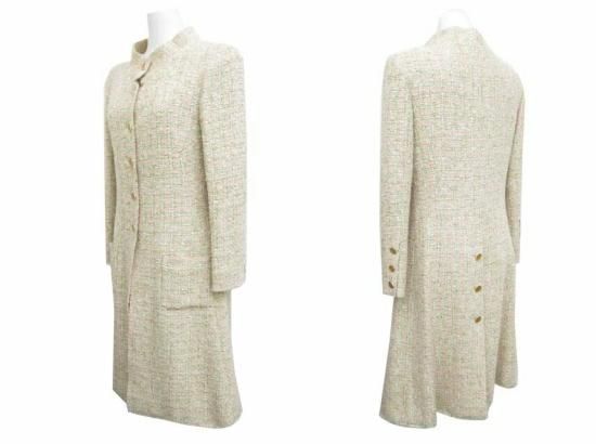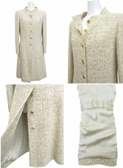 CHANEL ツイードコート ピンクベージュ系×ライトグリーン系 中古A1