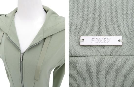 新品同様 FOXEY NEW YORK ロングパーカ 39936 ジェイドグリーン系 38 '19年