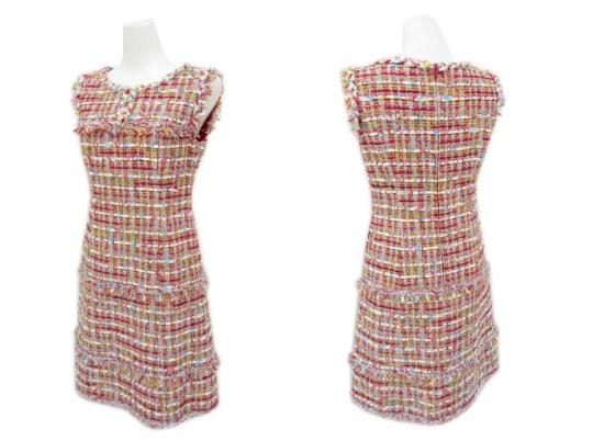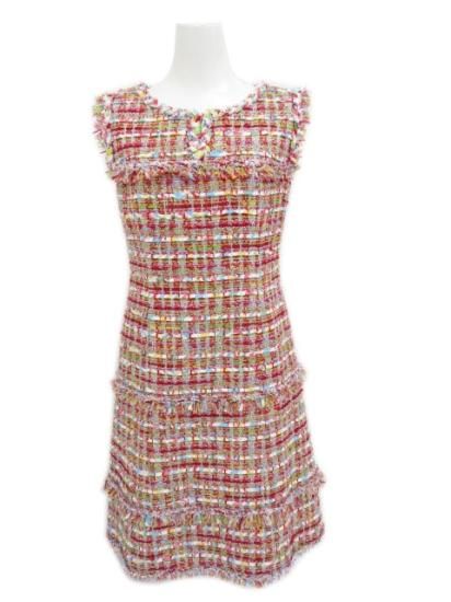 Rene ツイードワンピース ブローチ付き レッドMIX 34 '20年 中古A1美品