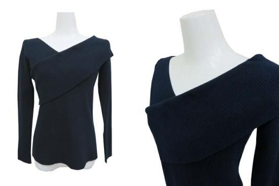 未使用 ADEAM レイヤードリブVネックトップ 39753 ネイビー 2 '19年