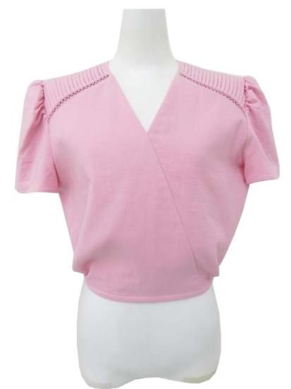 BORDERS at BALCONY コットンタックショルダーレースリゾートブラウス ベビーピンク 38 '20年SS 中古A1美品