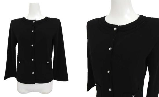 FOXEY BOUTIQUE ホリゾンタルリジッドニットジャケット 36842 ブラックブラック 38 '17年 中古A1美品