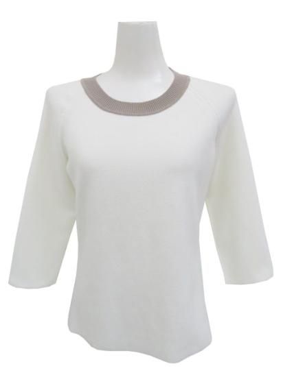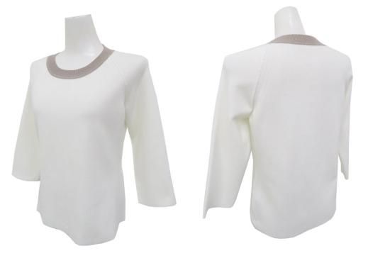 FOXEY BOUTIQUE ニットトップ シルバーシェード 39697 ロイヤルホワイト×グレージュ 40 '19年 中古A1美品