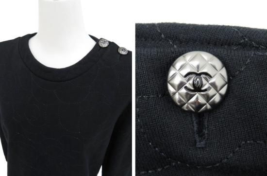 CHANEL スウェットトレーナー カメリアステッチ ココボタン ブラック 38 ’18年AW 中古A1美品