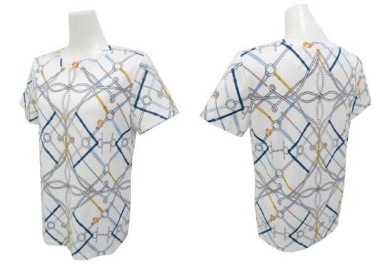 新品同様 HERMES マイクロTシャツ 完璧なコース プリント ホワイト 42 '21年SS
