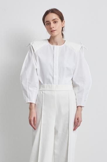 新品同様 yori Shirocon リボンパワーショルダーブラウス ホワイト 36 '22年SP