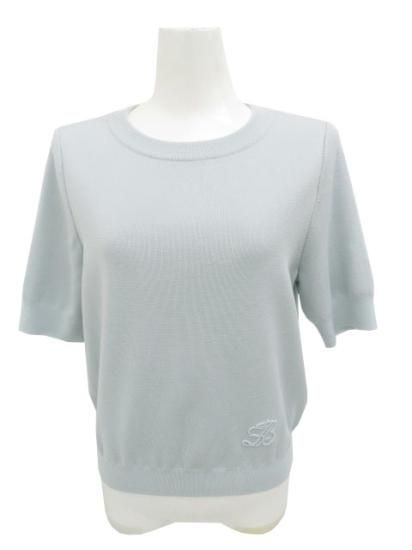 新品同様 FOXEY BOUTIQUE ニットトップ プレジール 42968 アイスブルー 42 '22年 完売サイズ