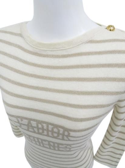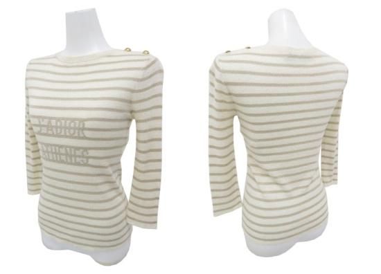 新品同様 Christian Dior J'A DIOR ATHENES MARINIERE SWEATER ライトベージュ×ゴールド系 I38 '22年