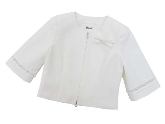 新品同様 Rene ジップアップジャケット リボンブローチ付き ホワイト 34 '21年