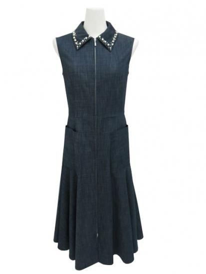 FOXEY NEW YORK ドレス ミレーヌ 襟取外しOK 42641 インディゴ 38 '22年 A1【中古】
