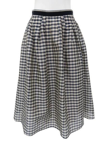 新品同様 FOXEY BOUTIQUE スカート フレンチギンガム 42696 ネイビー 38 '22年 全サイズ・カラー完売商品