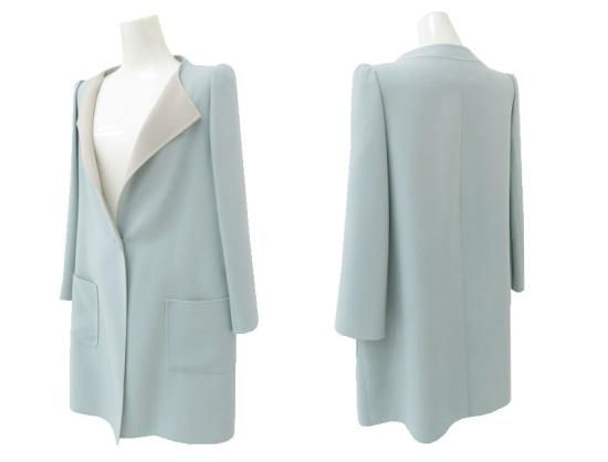 新品同様 FOXEY BOUTIQUE コート ヴォヤージュ 38116 ブルー×ベージュ 40 '18年