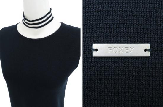 FOXEY NEW YORK SPORTS ノースリーブニットトップ 40727 ネイビー×ホワイト 38 '19年 中古A1