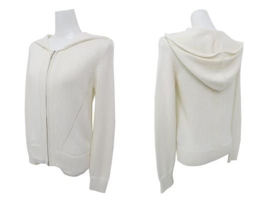 新品同様 FOXEY BOUTIQUE ニットパーカ アイレットV 39666 アイボリー 38 '19年