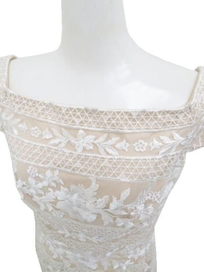 TADASHI SHOJI オフショルダードレス ホワイト×ベージュ 中古A1