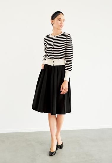新品同様 FOXEY BOUTIQUE ニットカーディガン カシミヤフレンチボーダー 43173 アイボリー×ブラック 38 '22年