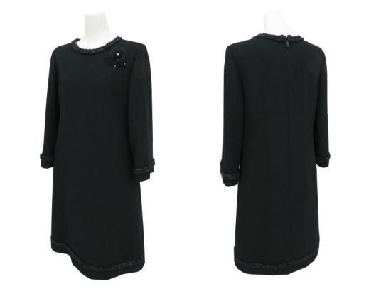 Rene ツイードドレス カメリアコサージュ付き ネイビー×ブラック 38 '22年 中古A1美品