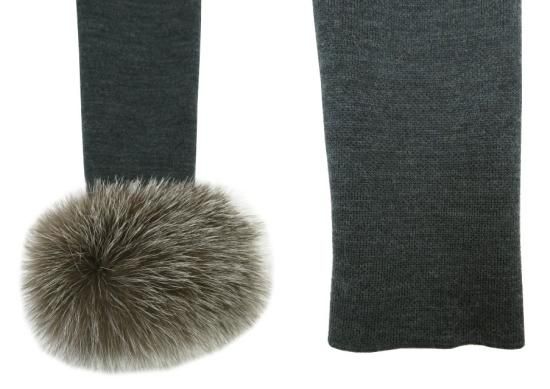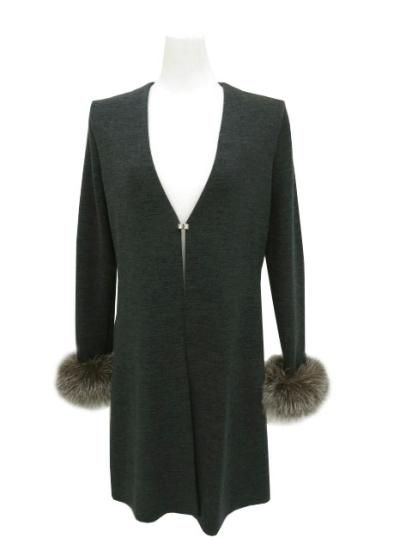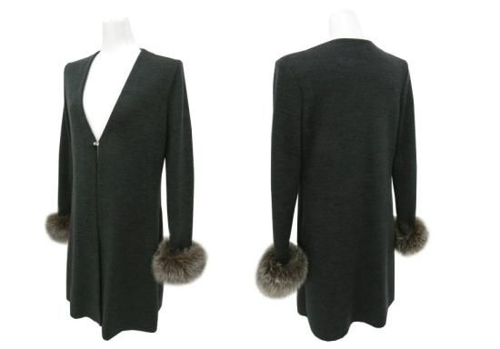新品同様 Rene フォックスファーカフス付きロングカーディガン 【ファー】 チャコールグレー×グレー 34 '19年