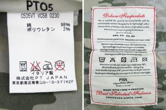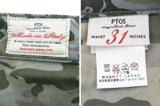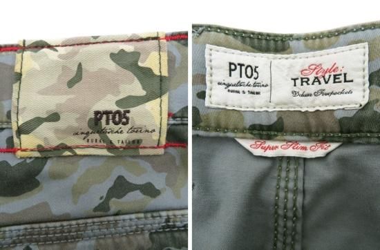 PT05 TRAVEL メンズ ガーメントダイカモフラージュコットンストレッチパンツ カーキ 31 中古A1