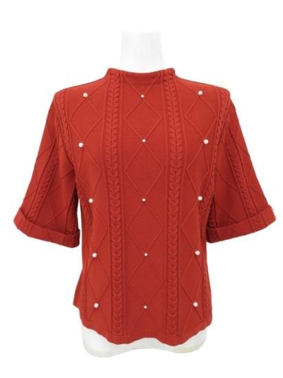 Rene チェックアンドパールニットプルオーバー ブロンズレッド 34 '22年 A1美品【中古】