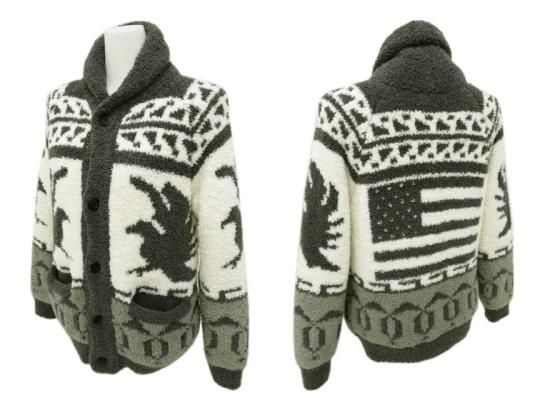 kashwere メンズ カウチンカーディガン ダークグレー×グレー×ホワイト S 中古A1