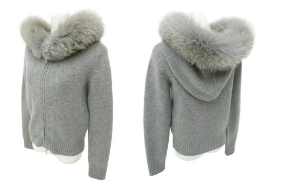 FOXEY BOUTIQUE ニットパーカ パインコーン 【ファー】 38523 グレー 38 '18年 中古A1美品