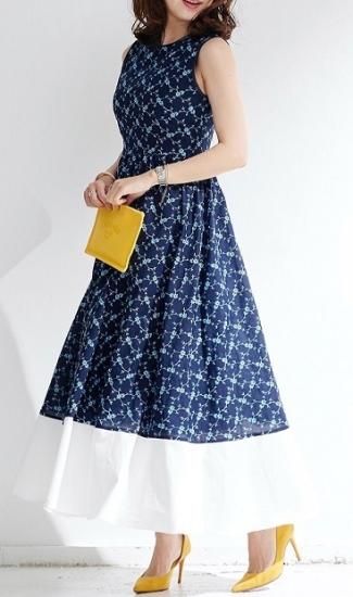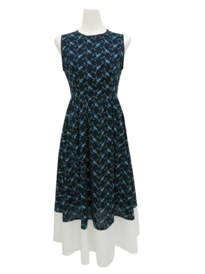 OBLI 刺繍バイカラーワンピース ネイビー×フラワー刺繍 S '21年 中古A1