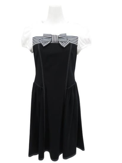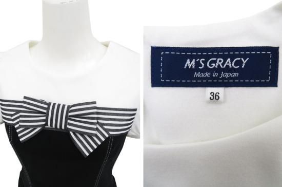 新品同様 M’S GRACY ボーダーリボンワンピース ブラック×ホワイト 36 '21年
