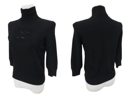 CHANEL 七分袖タートルニット ブラック 38 中古B1